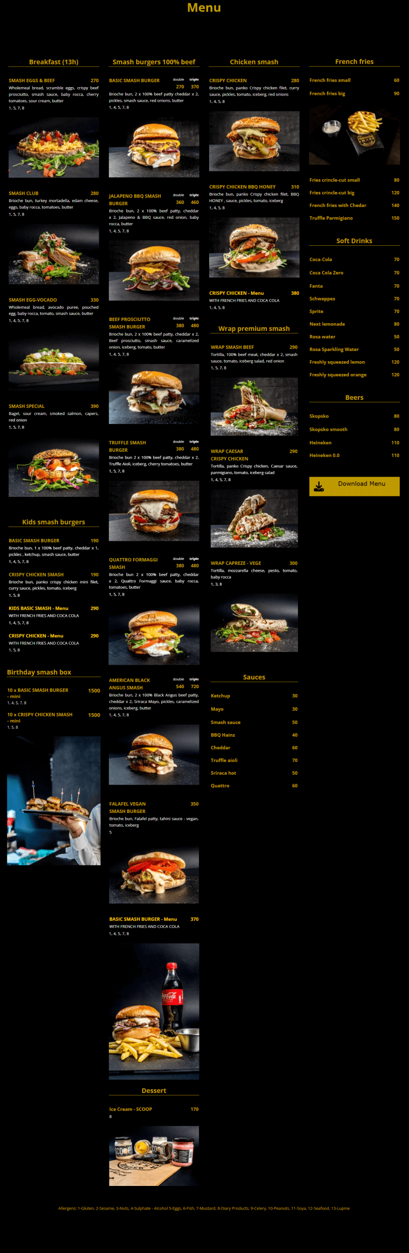 Imagine the perfect burger – one that is made of 100% fresh meat, full of delicious and healthy sauces, seasoned with natural spices and packed with fresh seasonal salads. Premium Smash Burger offers you not just a meal, but an experience! Our burgers do not contain unnecessary high fats, and the meat is carefully processed without high heat treatment, to preserve all nutrients and get maximum flavor.